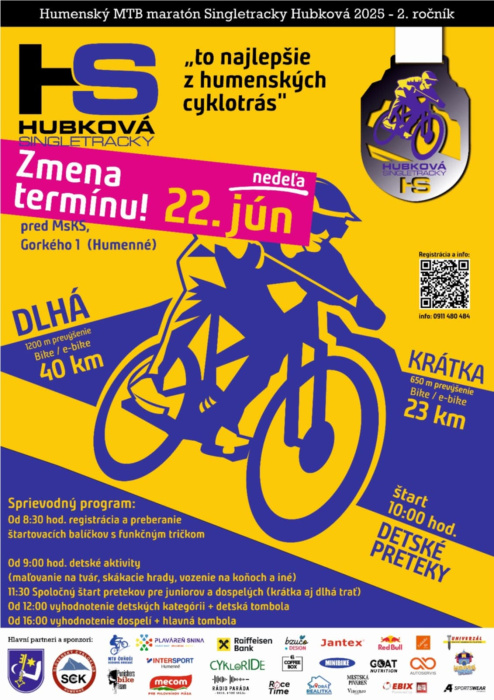 Od 11:30 štartuje cyklistický program aj pre dospelých – Singletracky Hubková ponúknu tri trasy rôznej náročnosti pre všetkých milovníkov terénnej jazdy.