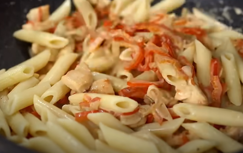 - Nakoniec pridáme uvarené cestoviny, dôkladne premiešame a necháme chvíľu prejsť varom, aby sa chute spojili.
