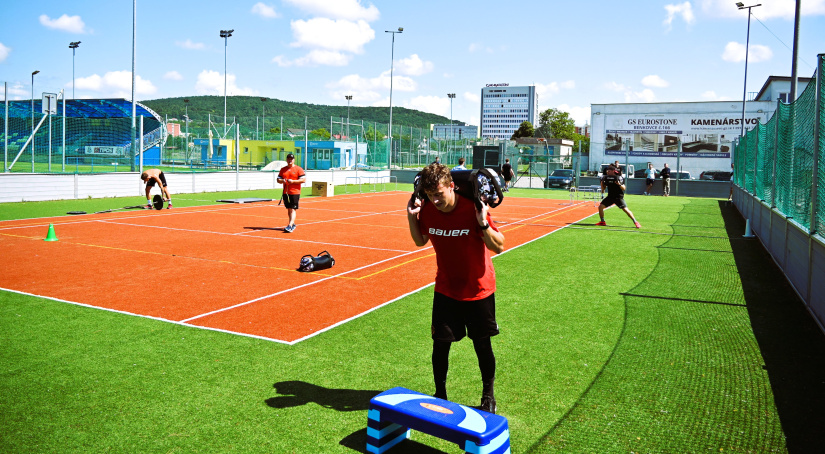 Tréningy na ľade má pod palcom Marcel Šimurda. Medzitým Andrej Parfionov zmenil multifunkčné ihrisko pri futbalovom štadióne na poriadne náročnú „sparťanskú“ dráhu. Výrazy tvárí hráčov hovorili za všetko – ide o poriadnu fyzickú výzvu, ktorej bol svedkom aj primátor mesta Miloš Meričko.