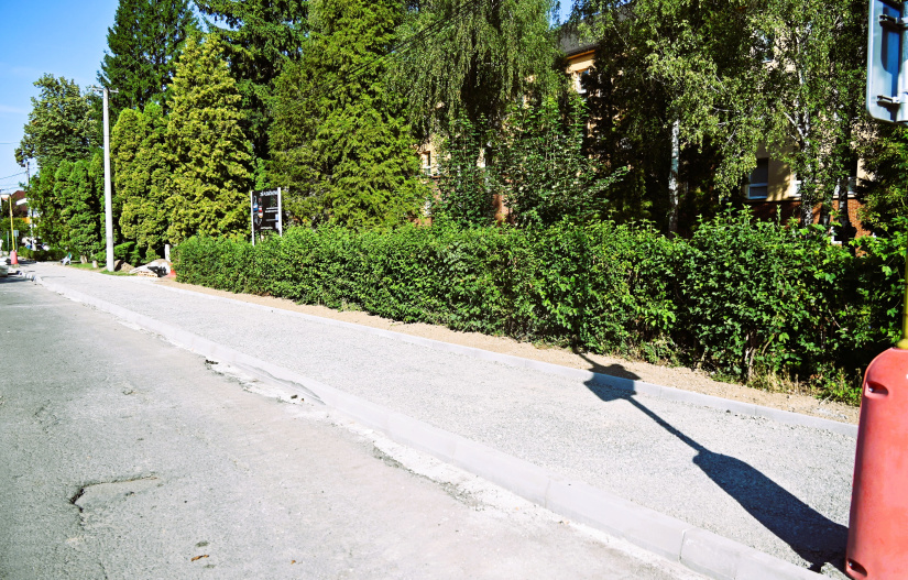 Rekonštrukcia chodníka na ľavej strane medzi križovatkami so Štefánikovou a Československej armády napreduje. Na 480-metrovom úseku už je časť podkladu hotová, na iných miestach sa ukladajú obrubníky a odstraňuje starý asfalt. Práce majú byť ukončené do konca prázdnin, aby žiaci ZŠ Pugačevova začali nový školský rok už s bezpečným a moderným chodníkom.