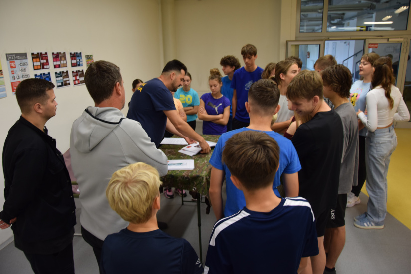 - Mínomet – žiaci si v dvojiciach vyskúšali rozloženie, presun a zloženie zbrane, pričom sa učili tímovej spolupráci.