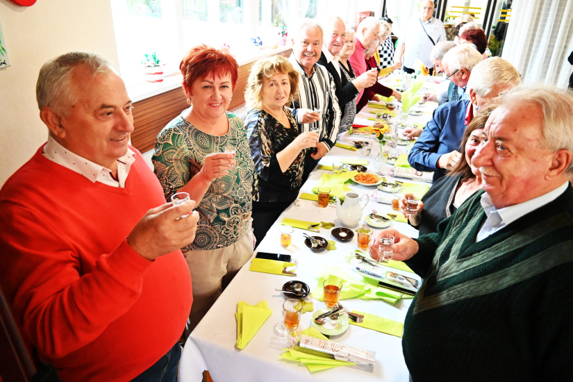 Primátor zároveň potešil prítomných „elixírom pre seniorov“ a kyticou pre Dankou Gejdošovou z Referátu denných centier, ktorá práve v ten deň oslavovala narodeniny.