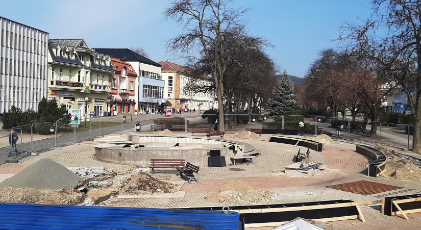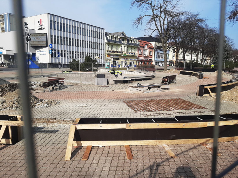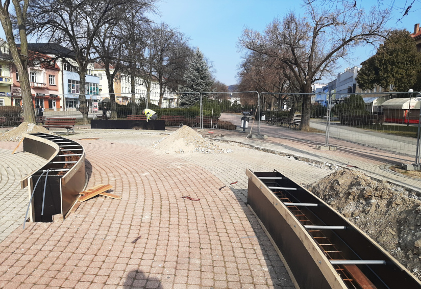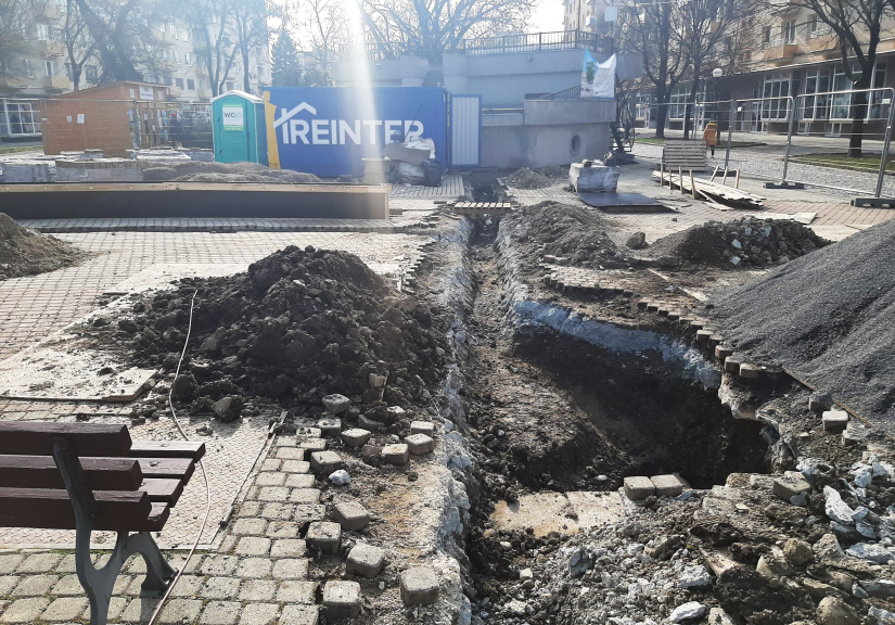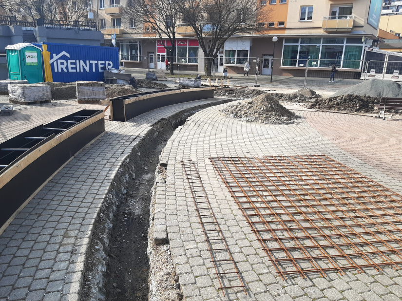 Aktuálne sa práce presúvajú aj na povrch. Výkopové práce naznačujú trasu nových technologických a inštalačných rozvodov, ktoré budú viesť k fontáne a k plánovaným lavičkám.