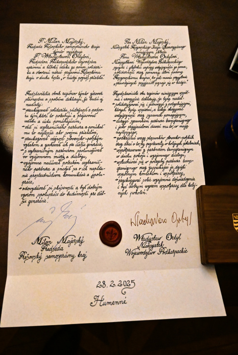 🗓 28. februára 2025 sa v kaštieli uskutočnilo slávnostné podujatie za účasti významných hostí. Primátor Miloš Meričko privítal predsedu PSK Milana Majerského a maršálka Podkarpatského vojvodstva Wladyslawa Ortyla, ktorí svojou účasťou symbolicky spečatili slovensko-poľskú spoluprácu.