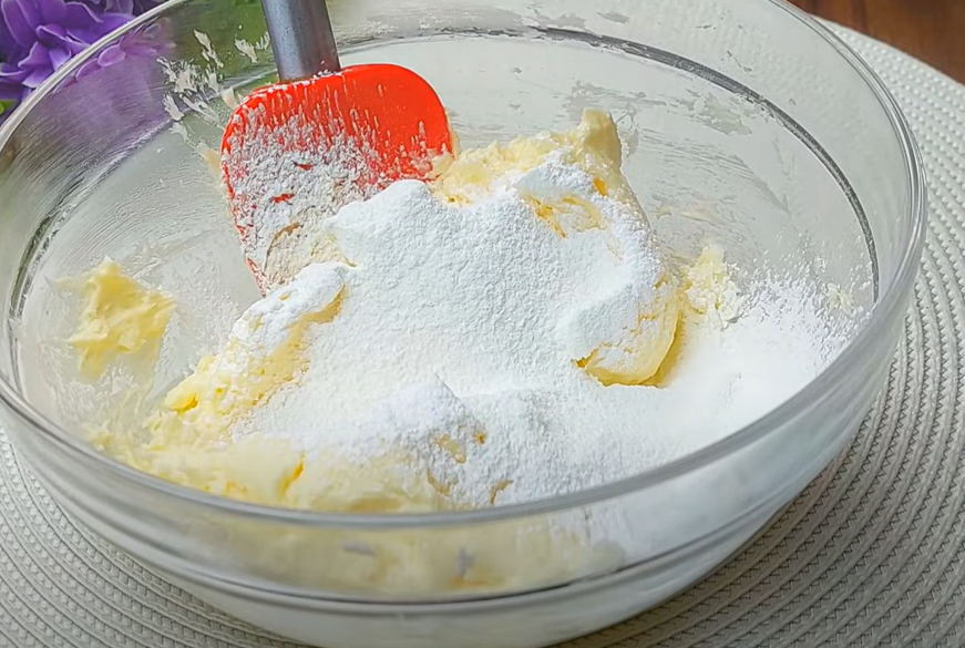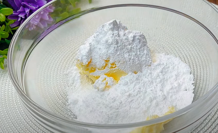 - Primiešame preosiaty kukuričný škrob a postupne aj múku.