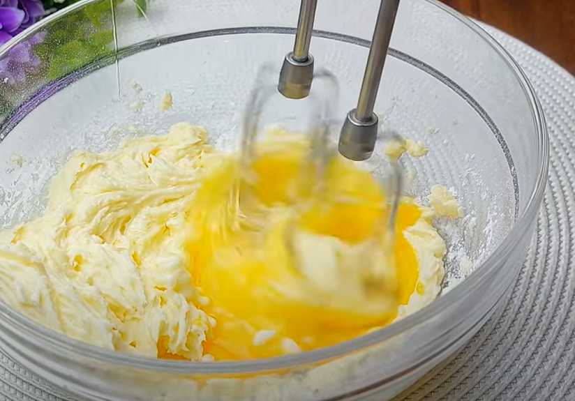 - V miske vyšľaháme maslo so soľou, vanilkovým a práškovým cukrom do peny.