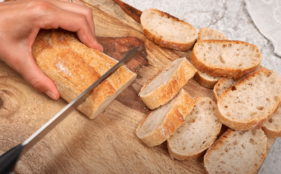 - Bagetu nakrájajte na kolieska.