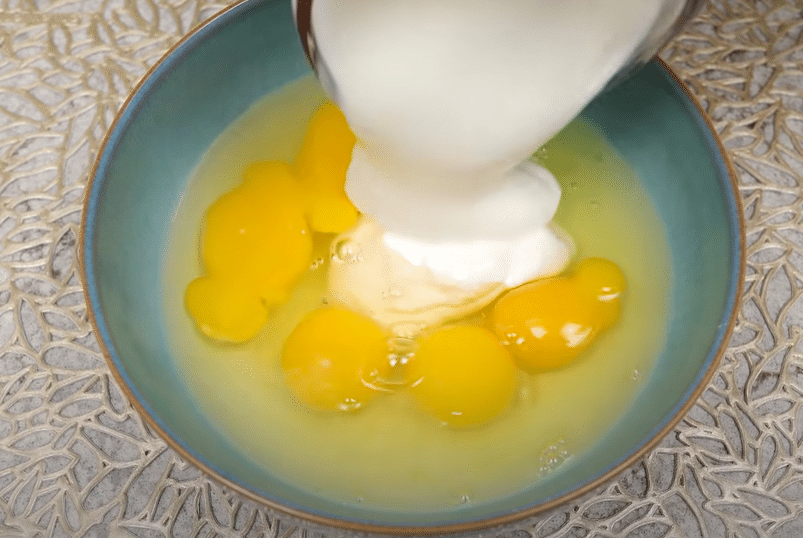 - V miske vyšľahajte vajcia, jogurt, soľ, korenie, drvenú papriku a olivový olej.