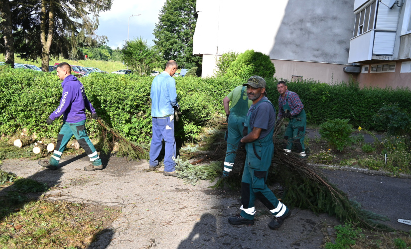 Do odstraňovania následkov vetrovej kalamity sa už v utorok 8. júla od 5:00 ráno pustili pracovníci strediska Verejnej zelene Technických služieb mesta Humenné. Šesť pracovníkov, dvaja pilčíci a dva traktory s vlečkami mali plné ruky práce. Prioritou bolo uvoľnenie ciest a verejných priestranstiev, aby sa obnovila bezpečnosť pre chodcov a dopravu.