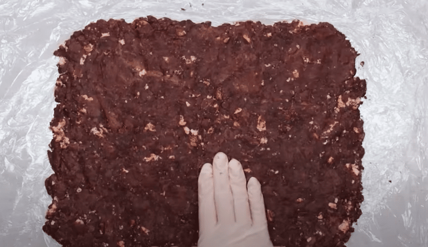 - Zmiešame ich s rozmixovanými banánmi, zvyšnými 70 g nalámaných sušienok a kakaom. Dôkladne premiešame a vypracujeme mäkké cesto.