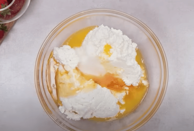 - Pripravíme si krém – všetky suroviny okrem ovocia spolu vymiešame dohladka.