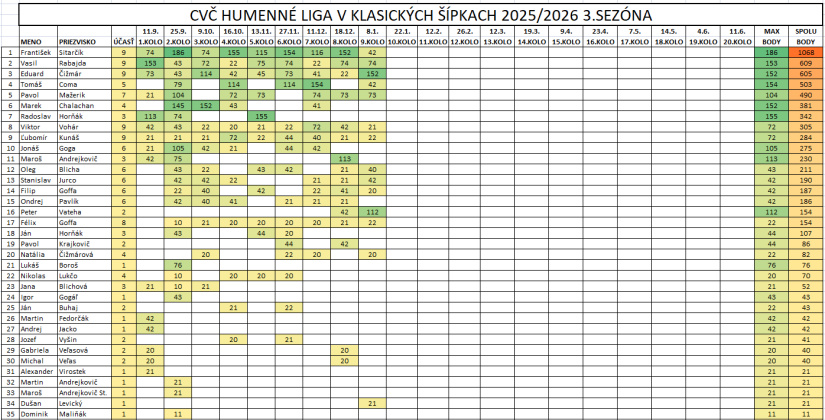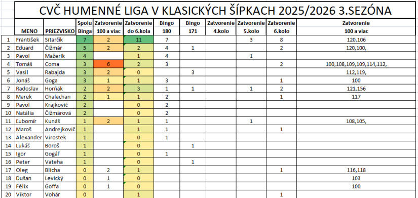 Do tabuľky budú prirátané bonusové body a to po 1 bode za výhru v skupine, za každé bingo a každé 100 a viac zatvorenie.