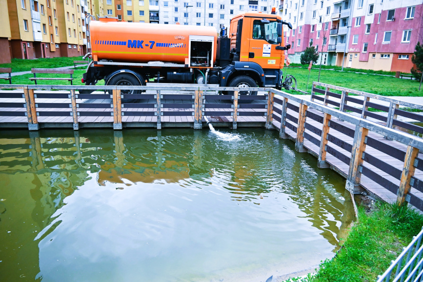 S príchodom jari prichádza aj pravidelná údržba. Dno jazierka sa čistiť nebude, aby sa nenarušila prirodzená mikroflóra dôležitá pre život rýb. Technické služby mesta preto doplnili chýbajúcu vodu – po zime jej hladina výrazne klesla. Do jazierka pribudlo spolu 21 000 litrov vody, ktoré vrátili hladinu späť do normálu. Chladnejšie aprílové počasie zatiaľ drží život v jazierku v pokojnejšom režime.